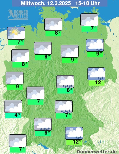 Am Mittwochnachmittag zeigt sich der Himmel meist stark bewölkt oder es ist bedeckt, im äußersten Nordwesten sind zeitweise auch Auflockerungen möglich. Dabei fällt vor allem entlang der Luftmassengrenze, verlaufend von Baden bis nach Ostachsen, sowie südlich davon, zeitweise Regen. Im Norden, Westen und Nordwesten bleibt weitgehend trocken.