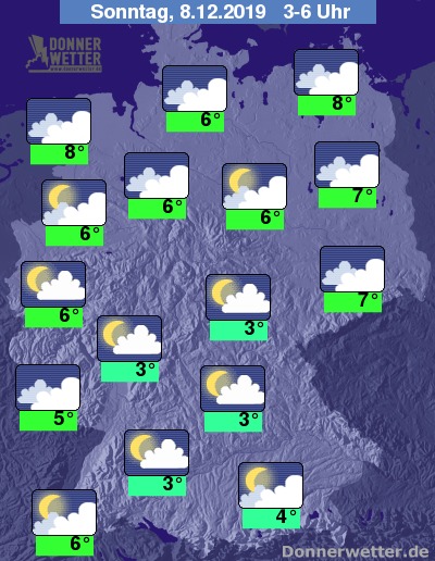 Der zweite Adeventssonntag startet im Norden und Osten mit einer meist geschlossenen Wolkendecke, an der Nordseeküste können auch ein paar Tropfen Regen fallen. Im Süden und Westen ist es teils heiter bis wolkig, teils aufgelockert bewölkt und es bleibt trocken.