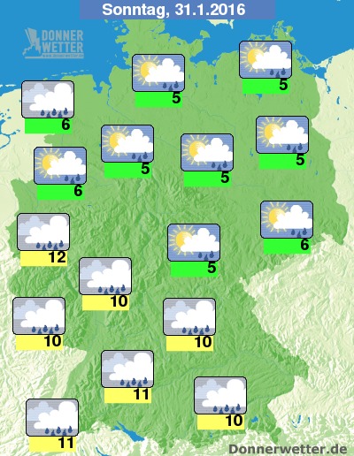 Die Temperatur steigt auf 4 Grad in Oberfranken und bis 12 Grad in Aachen. Im Norden weht ein teils starker Wind.