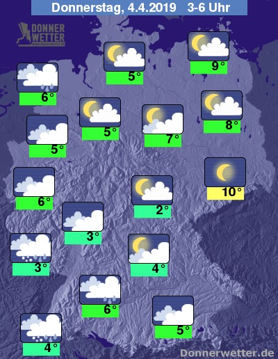 Während der zweiten Nachthälfte regnet es meist nur noch an der Nordseeküste und im Südwesten. In den Bergen schneit es zum Teil. Während die Wolkendecke im Süden und Westen eher geschlossen bleibt, funkeln im Norden und Osten zeitweise die Sterne.
