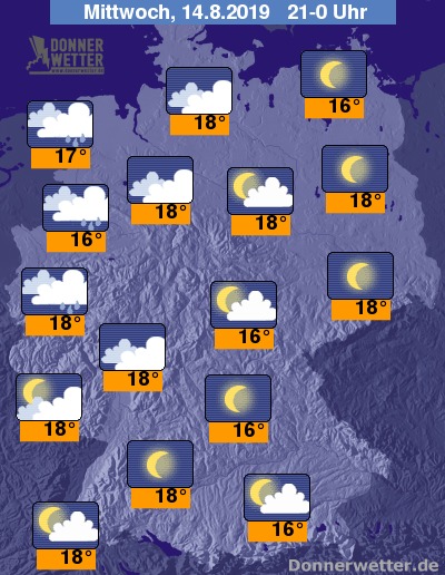 Bis zu den Frühstunden kühlt die Luft auf 9 bis 16 Grad ab, am kühlsten wird es dabei in Bayern, am mildesten bleibt es in den Ballungsgebieten des Westens.