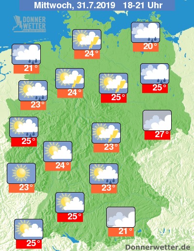 Am Abend gehen teilweise noch Schauer und Gewitter nieder, sonst präsentiert sich der Himmel wechselnd wolkig, im Osten auch stärker bewölkt. Im Südwesten kann man die allmählich untergehende Sonne noch längere Zeit genießen. Hier sollte es auch trocken bleiben.