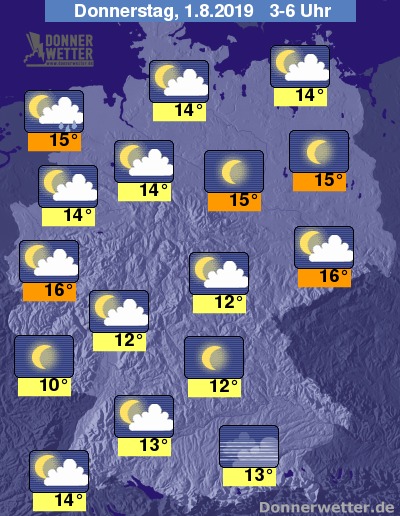 Während der zweiten Nachthälfte bleibt es wechselnd wolkig, gebietsweise auch sternenklar und überwiegend trocken. Im Süden kann sich stellenweise Nebel bilden.