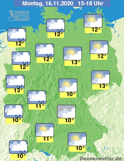 Temperaturen in den Nachmittagsstunden um 10 bis 13 Grad.