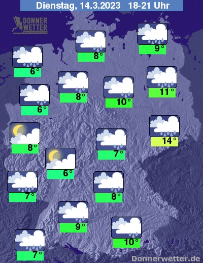 Heute Abend kann es hier und da etwas auflockern, zumeist ziehen aber viele und dichte Wolken durch und es bilden sich gebietsweise Schauer, teils mit Schneeflocken vermischt. Die Temperatur liegt bei 6 Grad an der Ems und bis zu 14 Grad in der Lausitz. Es weht ein starker und zum Teil stürmischer Wind.