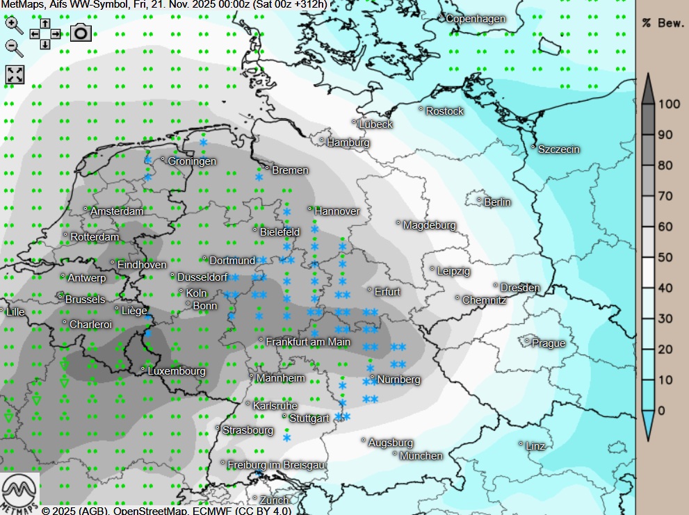 Die aktuellen Wettermodelle deuten weiterhin auf eine mögliche größere Wetterlagenumstellung in der zweiten Novemberhälfte hin. Die bis dahin rechnenden Modellläufe sehen diesen ab dem 19./20.November.