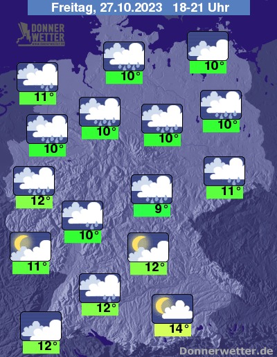 Am Samstag ist es aufgelockert oder dicht bewölkt, dabei bilden sich gebietsweise Schauer. Im Süden bilden sich nur vereinzelt Schauer. Die Temperatur steigt auf 11 Grad in Erfurt und bis 15 Grad n Stuttgart.