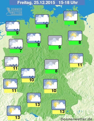 Heute Nachmitag bleibt es im Süden und anfangs auch im Osten und Nordosten locker bis aufgelockert bewölkt und trocken. Über den Westen und Norden ziehen bereits dichte Wolken aus denen es zeitweise regnet, zum Abend hin breiten sich die Regenwolken auch auf die östlichen Landesteile hin aus. Im Nordosten, äußeren Osten und im Süden bleibt es jedoch trocken. Die Temperatur liegt bei 8 Grad an der Müritz und etwa 13 Grad im Oberrheingraben. An Nord- und Ostsee weht starker und teils stürmischer Wind, dabei sind Sturmböen möglich.