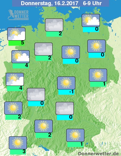 Im Thüringer Bergwald um minus 1 Grad C und im Ostfriesland um 5 Grad C.