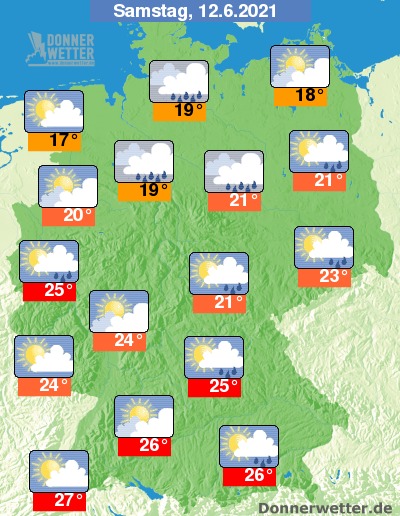 Heute zeigt sich der Himmel vornehmlich im Norden und Nordosten häufiger stark bewölkt und zeitweise muss im Tagesverlauf mit Schauern und einzelnen Gewittern gerechnet werden. Regional besteht Unwettergefahr durch Starkregen. Einzelne Schauer gibt es zudem im Südosten des Landes. In der Westhälfte bleibt es am Samstag bei einem Wechsel aus Sonne und Wolken meist trocken.
