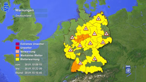 Zur Zeit bestehen in Deutschland verbreitet Wetterwarnungen aufgrund von Schneefällen, sowie zusätzliche Warnungen vor Markantem Wetter in den norddeutschen Mittelgebirgen sowie rund um den Schwarzwald, hier wird vor teils starkem und ergiebigen Schneefällen gewarnt.