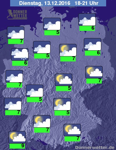 Heute Abend ziehen über den Norden dichte Wolken mit zeitweiligem Regen hinweg. Häufig stark, teils aber auch aufgelockert bewölkt ist es von der breiten Landesmitte bis in den Süden der Republik, dabei bleibt es mehrheitlich trocken, etwas Regen ist aber möglich. Die Temperatur liegt zwischen 4 und 9 Grad.