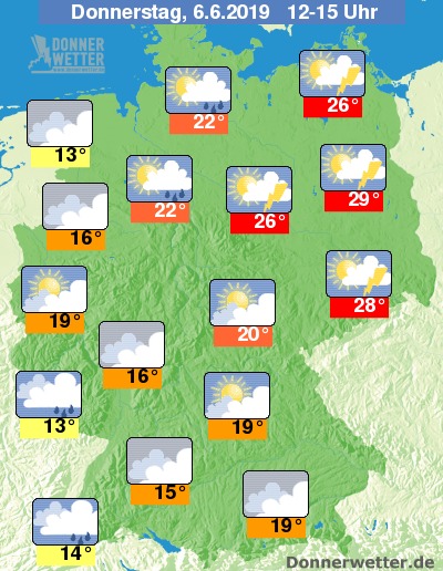 Am Nachmittag brauen sich im Nordosten in der noch sehr warmen und schwülen Luftmasse zum Teil mächtige Gewitterwolken zusammen. Örtlich drohen Unwetter mit Starkregen, Hagelschlag und kräftigen Windböen. Auch im Alpenvorland können teils gewittrige Regengüsse nieder gehen. Sonst gibt es eine Mischung aus Sonne und Wolken. Vereinzelt können im Westen noch Schauer auftreten.