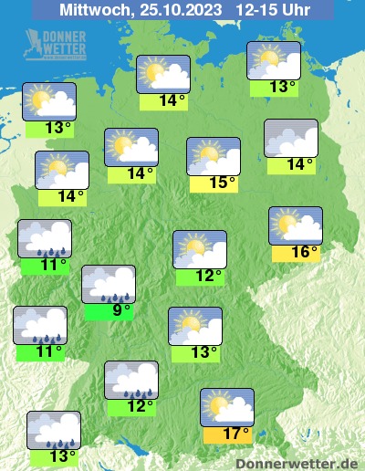 Heute Nachmittag breitet sich über der Südwesthälfte Deutschlands teil langanhaltender Regen aus. Weiter nach Nordosten hin ist es meist locker, oft aber auch schon stark bewölkt, jedoch noch trocken. Die Temperatur liegt bei 9 Grad am Westerwald und 17 Grad in Berchtesgaden.