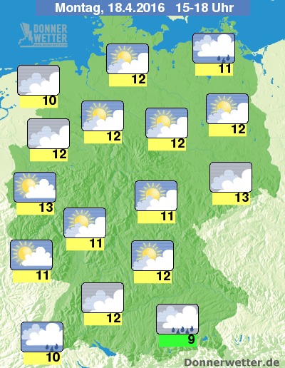 Heute Nachmittag halten sich in Richtung Alpen weiterhin meist dichte Wolken und es fällt zeitweise Regen. Sonst klingt der Regen im Süden Deutschlands von Nordwesten her immer weiter ab. Von Thüringen bis nach Sachsen ist es zwar oft stark bewölkt, dazu jedoch trocken. Im übrigen Bundesgebiet ist es größtenteils heiter bis sonnig, zum Teil ziehen aber auch einige Wolken durch, dabei bleibt es weitgehend trocken. Die Temperatur liegt bei teils nur 9 Grad am Alpenrand und um 13 Grad in Köln.