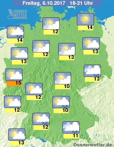 Heute Abend bilden sich im Alpenvorland, über Sachsen und im Nordseeumfeld noch weitere Schauer, sonst zieht meist nur lockere, teils auch aufgelockerte Bewölkung durch und es bleibt weitgehend trocken. Die Temperatur liegt bei kühlen 10 Grad im Eichsfeld und bis 15 Grad in der Kölner Bucht.