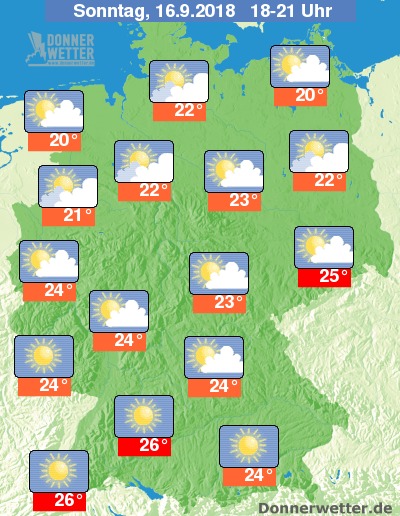 Am Montag bleibt es über der Südhälfte Deutschland weitgehend sonnig, im Norden ziehen hingegen oft viele, zum Teil sogar dichte Wolken durch. Im übrigen Bundesgebiet ist es meist locker bewölkt. Es bleibt landesweit trocken bei Höchstwerten von 21 Grad an der Nordseeküste und bis 28 Grad am Mittel- und Oberrhein.