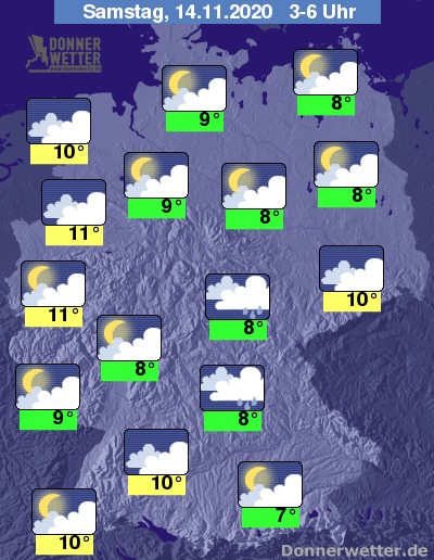 Bis zu den Frühstunden kühlt die Luft auf 11 bis 7 Grad ab.