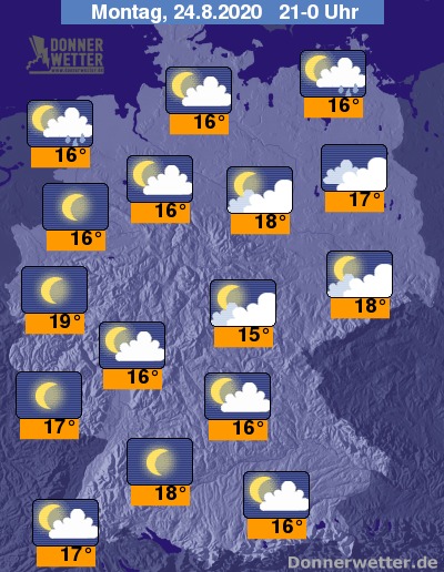 Temperaturrückgang am späteren Abend auf Werte um 19 bis 15 Grad.