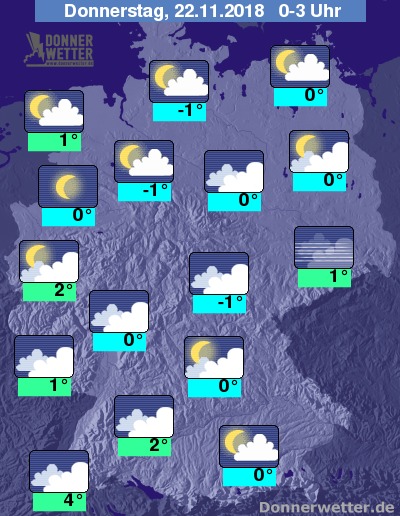 In der Nacht zeigt sich der Himmel in der Nordhälfte des Landes überwiegend locker bewölkt, teils auch sternenklar. Im Süden bleibt es bedeckt und nur selten lockern die Wolken auf. Schauer sind in der Nacht nicht zu erwarten.