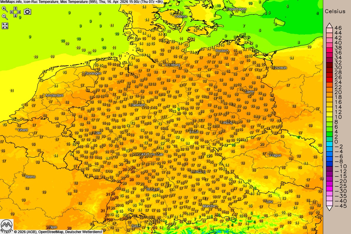 Die Temperaturen erreichen am Nachmittag Höchstwerte um 16 Grad an der Nordseeküste und um 20 Grad in Baden.
