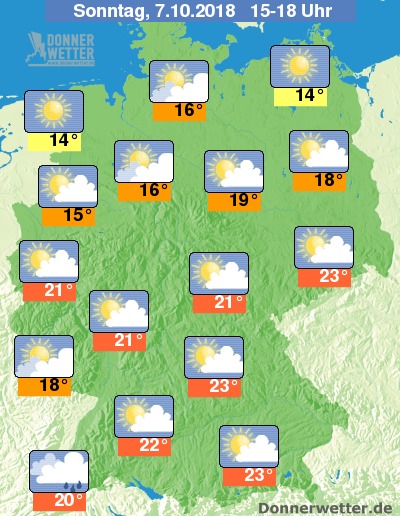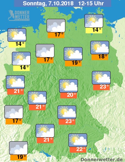 Im weiteren Nachmittagsverlauf und in Richtung Abend nimmt der Anteil heiterer Phasen zu, an den Küsten sind auch längere sonnige Abschnitte möglich. Am Oberrhein sind zeitweise Schauer zu erwarten, sonst bleibt es trocken.