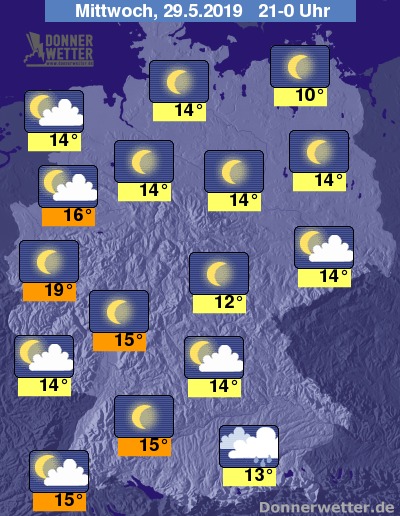 Bis Mitternacht klart der Himmel auch im Süden immer häufiger auf, nur an den Alpen halten sich noch einige Regenwolken.