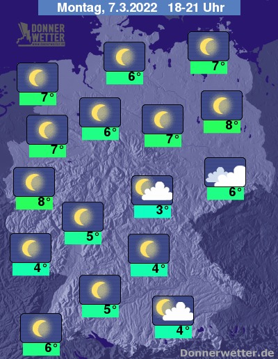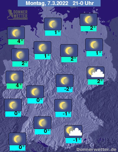 Die Temperaturen gehen bis Mitternacht auf Werte um 4 Grad in Ostfriesland und -2 Grad im Thüringer Becken zurück.