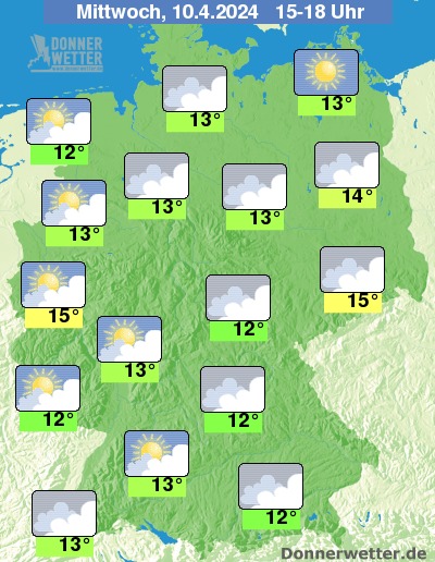 In den Nachmittagsstunden zeigt sich der Himmel anfangs noch vereinzelt wechselnd oder stark bewölkt, im Verlauf heitert es dann auch verbreitet auf. Es bleibt niederschlagsfrei.