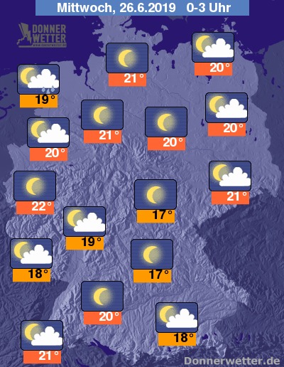 In der Nacht zeigt sich der Himmel entlang von Rhein und Oder sowie am Alpenrand zunächst noch locker bewölkt, im weiteren Verlauf klart der Himmel - wie in weiten Teilen des Landes, aber auf. Nur in Franken sowie an der Ostseeküste halten sich dann noch lockere Wolken.