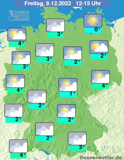 Die Temperaturen erreichen am Nachmittag Werte um 0 Grad an der Ostseeküste und 4 Grad im Rheinland.