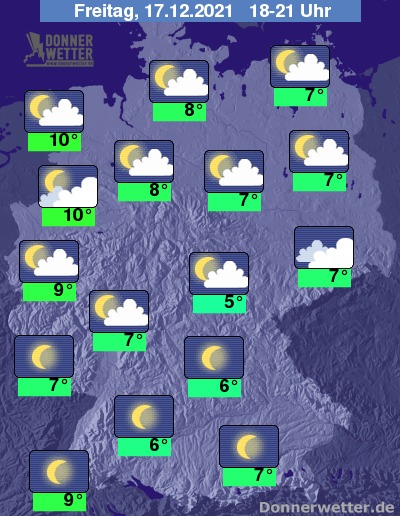Heute Abend zeigt sich vor allem im Süden ein meist sternenklarer Himmel, im übrigen Land ist es oft locker, hier und da aber auch noch stärker bewölkt, dabei bleibt es trocken. Die Temperatur liegt bei 5 Grad in Jena und 10 Grad in Wilhelmshaven.