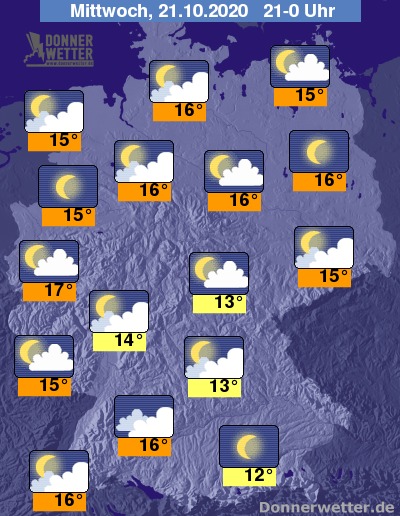 Bis zu den Frühstunden kühlt die Luft auf 10 bis 15 Grad ab, südlich der Donau, sowie im Alpenvorland sinken die Temperaturen oft in den einstelligen Bereich.