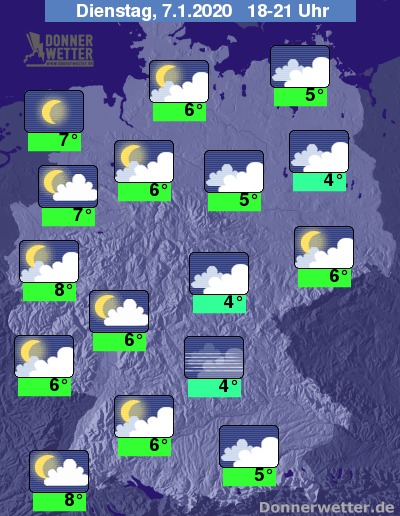 Während der zweiten Nachthälfte klart es auch im Osten auf. Sonst wechseln sich Wolken und Sterne miteinander ab. Im Süden bilden sich gebietsweise Nebelfelder aus oder verdichten sich.