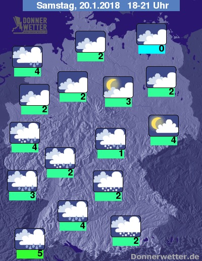 Heute Abend ist es im Norden und Osten überwiegend stark und nur noch hier und da auch aufgelockert bewölkt, dabei bleibt es aber weitgehend trocken. Weiter nach Südwesten hin ist es bedeckt und es fällt immer wieder Schnee, Schneeregen oder Regen, dazu besteht vor allem am Alpenrand und im Südosten oft Glättegefahr! Die Temperatur liegt bei 0 bis 5 Grad.