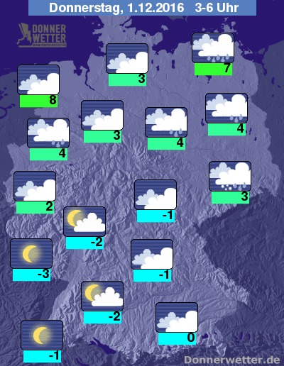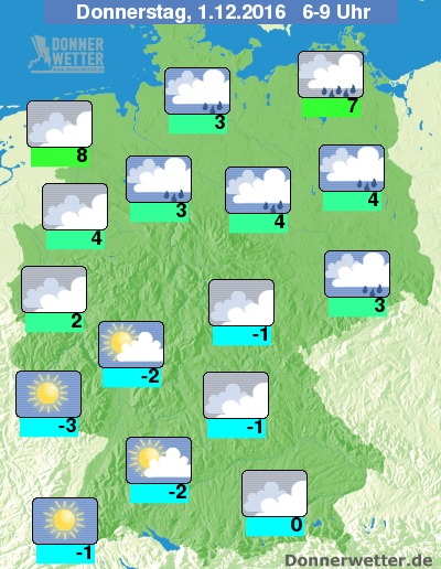 Die Temperaturen liegen bei -3 Grad C in der Pfalz und bei 8 Grad C im Ostfriesland.