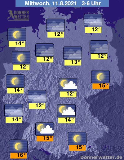In der folgenden Nacht ist der Himmel über dem Land größtenteils sternenklar, hier und da sind auch lockere Wolkenfelder möglich, dazu bleibt es trocken. Die Temperatur sinkt auf 16 Grad in Freiburg und bis 12 Grad in Hamburg.