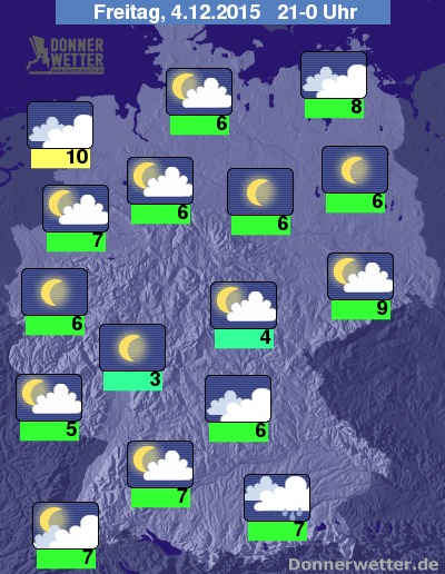 Heute Abend fällt im Süden und Südosten unter dichten Wolken noch zeitweise Regen. Dichte Wolken halten sich auch verbreitet im Nord- und Ostseeumfeld. Im großen Rest des Landes ist der Himmel hingegen überwiegend nur locker bewölkt und oft auch sternenklar. Es bleibt trocken bei Abendtemperaturen von 10 Grad an der Ems und um 3 Grad am Westerwald. An Nord- und Ostsee weht oft starker bis stürmischer Wind, im Norden weht ein frischer bis starker Wind, sonst ist es schwachwindig.