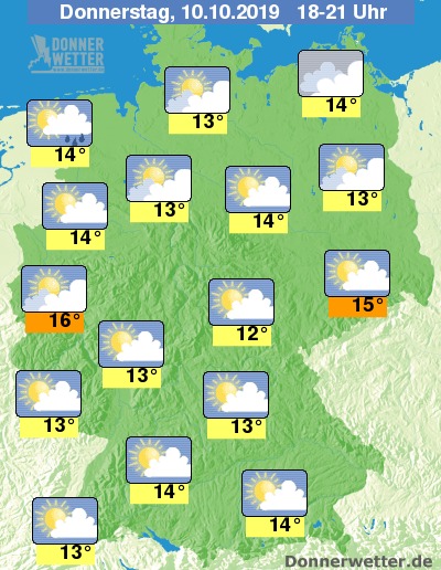 Die Temperaturen liegen vor Dämmerungsbeginn noch verbreitet zwischen 12 und 16 Grad.