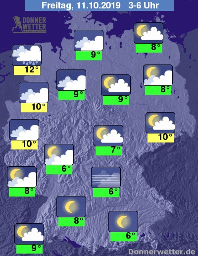 Während der zweiten Nachthälfte werden die Wolken im Nordwesten wieder zahlreicher und kompakter und unmittelbar im Küstenbereich der Nordsee setzt vermutlich neuer Regen ein. Im übrigen Land funkeln neben lockeren Wolken zeitweise die Sterne. Häufig klar bleibt es im Süden, hier kann sich jedoch in de stark abkühlenden Luft stellenweise Nebel bilden.