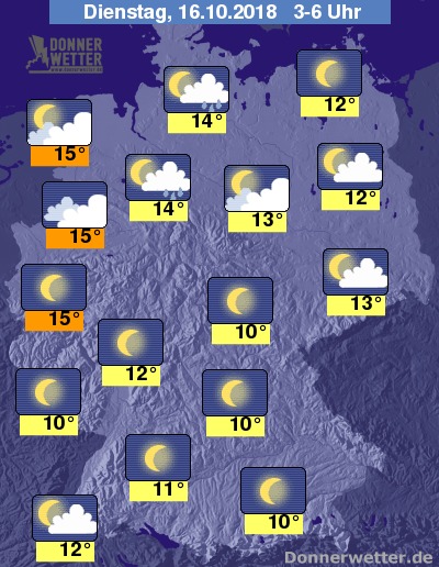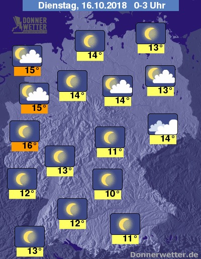 In der Nacht zeigt sich der Himmel über dem Norden Deutschlands überwiegend locker oder aufgelockert bewölkt, im weiteren Verlauf können dann vor allem entlang der Weser auch mal einzelne Schauer fallen. In der Südhälfte ist es meist sternenklar.