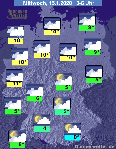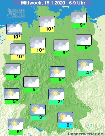Die Wochenmitte startet im Norden mit einer geschlossenen Wolkendecke, an der Nordseeküste kann zudem etwas Regen oder Sprühregen fallen. Im Südwesten und Südosten dominiert in den Frühstunden aufgelockerte Bewölkung, im Süden Bayerns und Badewürttembergs ist es teils auch heiter.