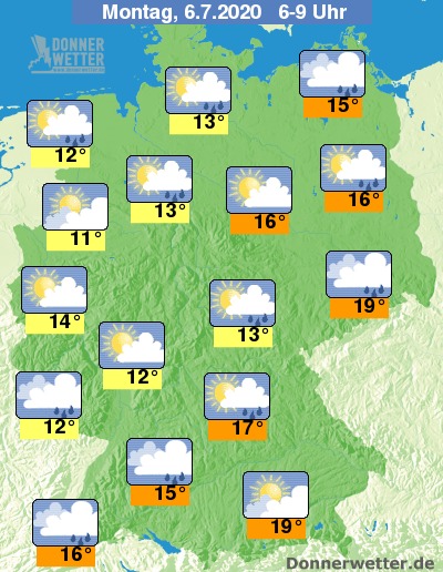 Die Temperaturen erreichen Werte um 11 Grad im Münsterland und um 19 Grad am Alpenrand.