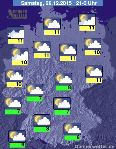 In der Nacht zum Sonntag ist es zunächst verbreitet locker oder auch aufgelockert bewölkt, vor allem im Norden und Westen von Deutschlands zieht sich der Himmel bis zum Morgen oft zu und im Nordseeumfeld kann auch Regen aufkommen, sonst bleibt es aber trocken. Die Temperatur sinkt auf 10 Grad in Hannover und bis etwa 5 Grad in Nürnberg. Im Norden weht teils starker, an der Nordsee auch stürmischer Wind mit möglichen Sturmböen.