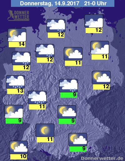 Am Abend ist der Himmel meist dicht bewölkt oder bedeckt und örtlich fallen Schauer. Zwischen Niederrhein und Ostfriesland kann es auch mal kräftiger regnen. Aufheiterung sind phasenweise im Südwesten des Landes zu erwarten.