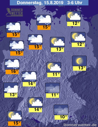 In der Nacht ist der Himmel über der Nordwesthälfte des Landes stark bewölkt oder bedeckt, dabei muss immer wieder mit Schauern gerechnet werden. Zwischen Nordseeküste und dem Münsterland kann es auch kräftiger und anhaltender regnen. In den übrigen Landesteilen überwiegen lockere Wolken, entlang der Oder und im Südosten kann es zeitweise auch aufklaren.