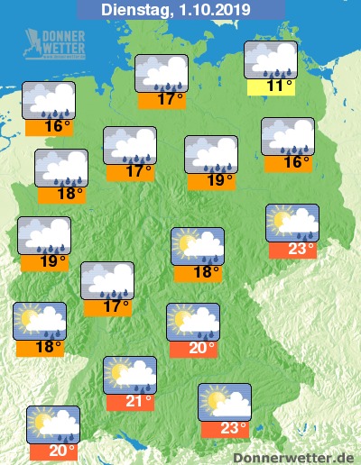Am Dienstag ist der Himmel im Norden und der Mitte des Landes bedeckt und es regnet. Weiter südlich wechseln sich Sonne und Wolken ab und es muss mit Schauern gerechnet werden. Dazu 11 Grad an der Ostsee und bis zu 23 Grad in Sachsen.