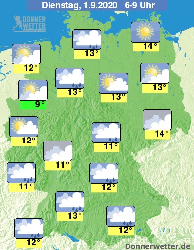 Die Temperaturen erreichen in den Frühstunden am Niederrhein Werte um 9 Grad, um 14 Grad auf Usedom.
