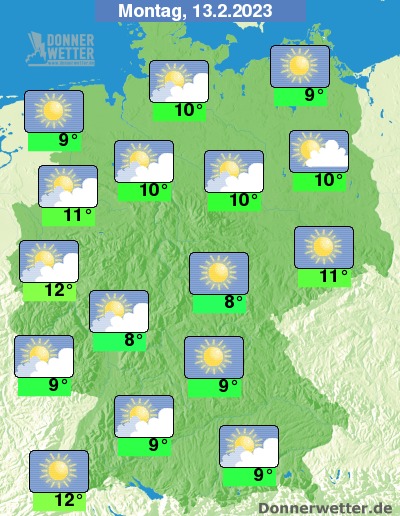 Die Temperaturen erreichen im Tagesverlauf Höchstwerte um 8 bis 12 Grad.