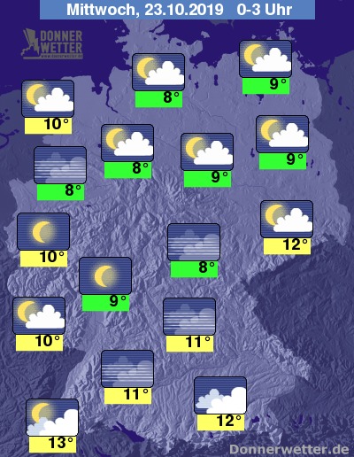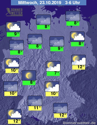 In der Nacht auf Mittwoch zeigt sich der Himmel zunächst noch verbreitet locker bewölkt, im weiteren Verlauf bildet sich in weiten Teilen des Landes Nebel. Es bleibt trocken.